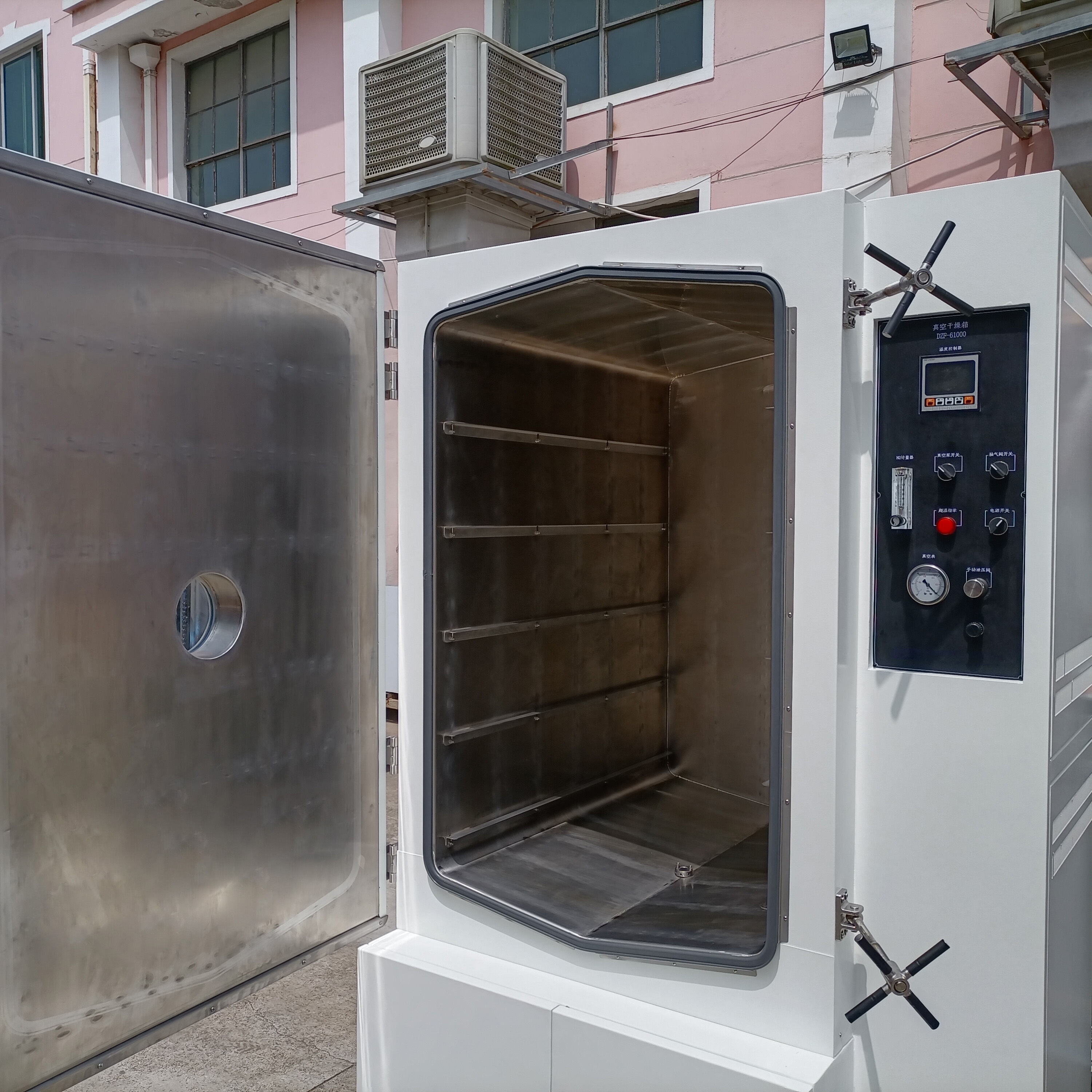 立式結(jié)構(gòu),腔體在左,儀表在右側(cè),底部與側(cè)面為真空系統(tǒng)